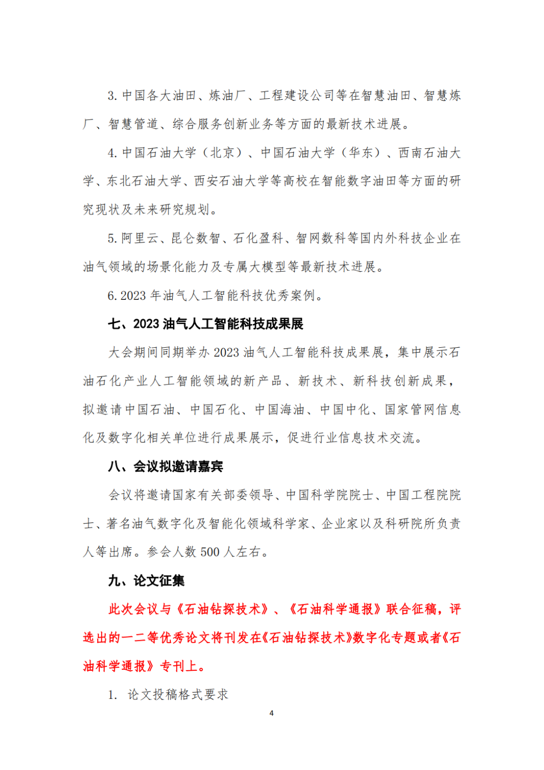 2023中国油气人工智能科技大会与《石油钻探技术》、《石油科学通报》联合征稿,评选出的一二等优秀论文将刊发在《石油钻探技术》数字化专题或者《石油科学通报》专刊上。