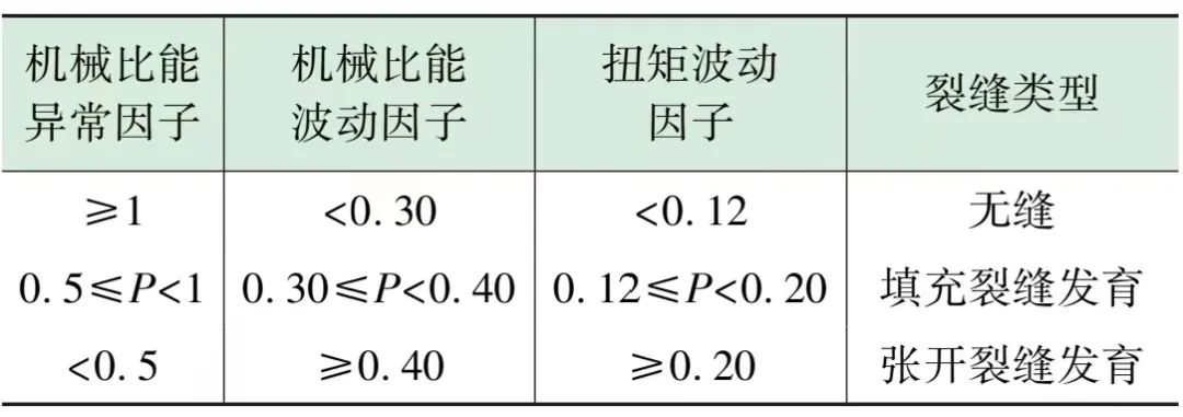 根据钻压、扭矩、深度、钻时等测量参数,计算无缝、填充裂缝和张开裂缝试件的扭矩波动因子、机械比能、机械比能异常因子、机械比能波动因子等衍生参数,如表2所示。